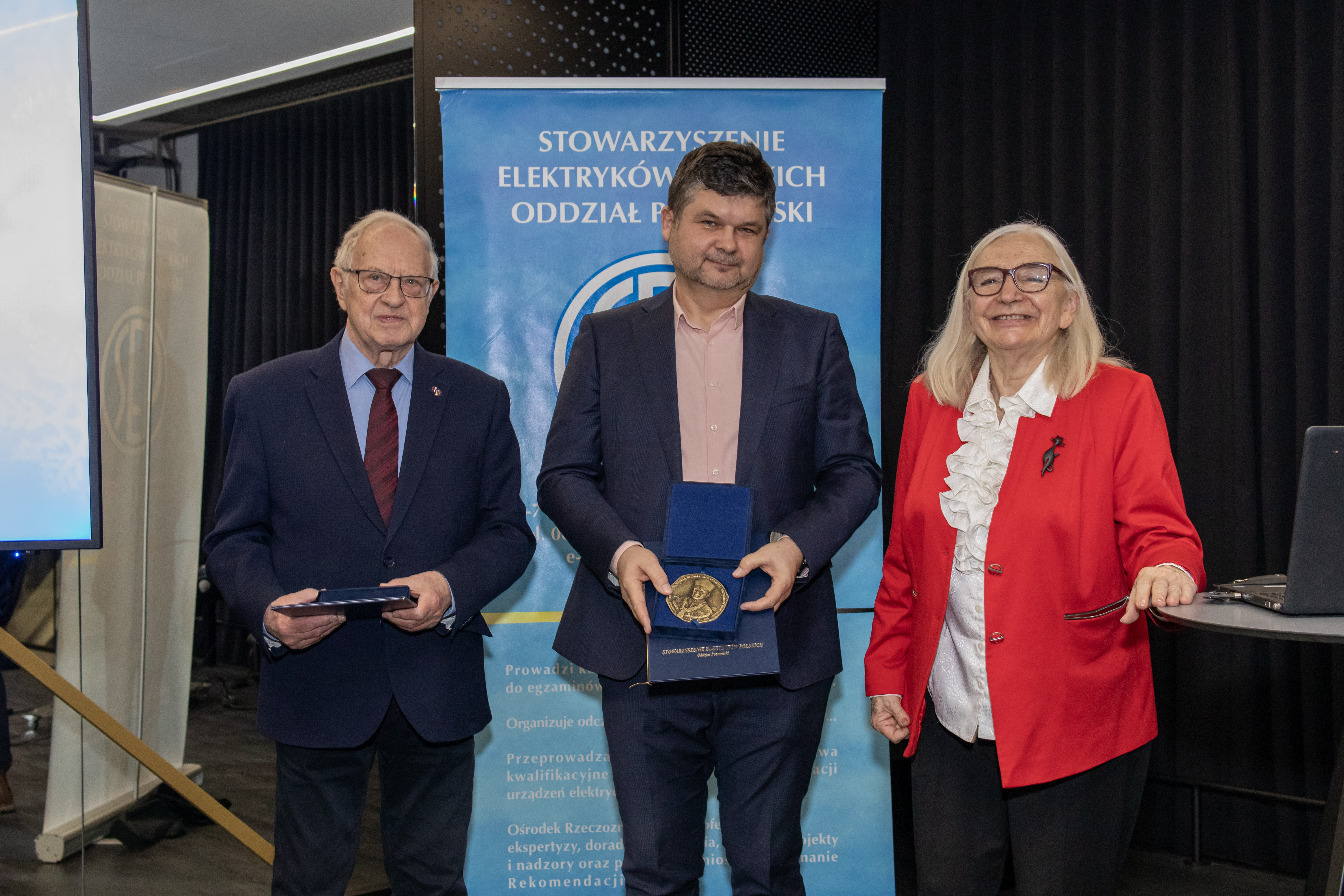 Odznaczeni Złotą lub Srebrną Odznaką Honorową SEP Koledzy (od lewej) – Wojciech Kasprzak, Jacek Kurek, Jacek Krawczyk