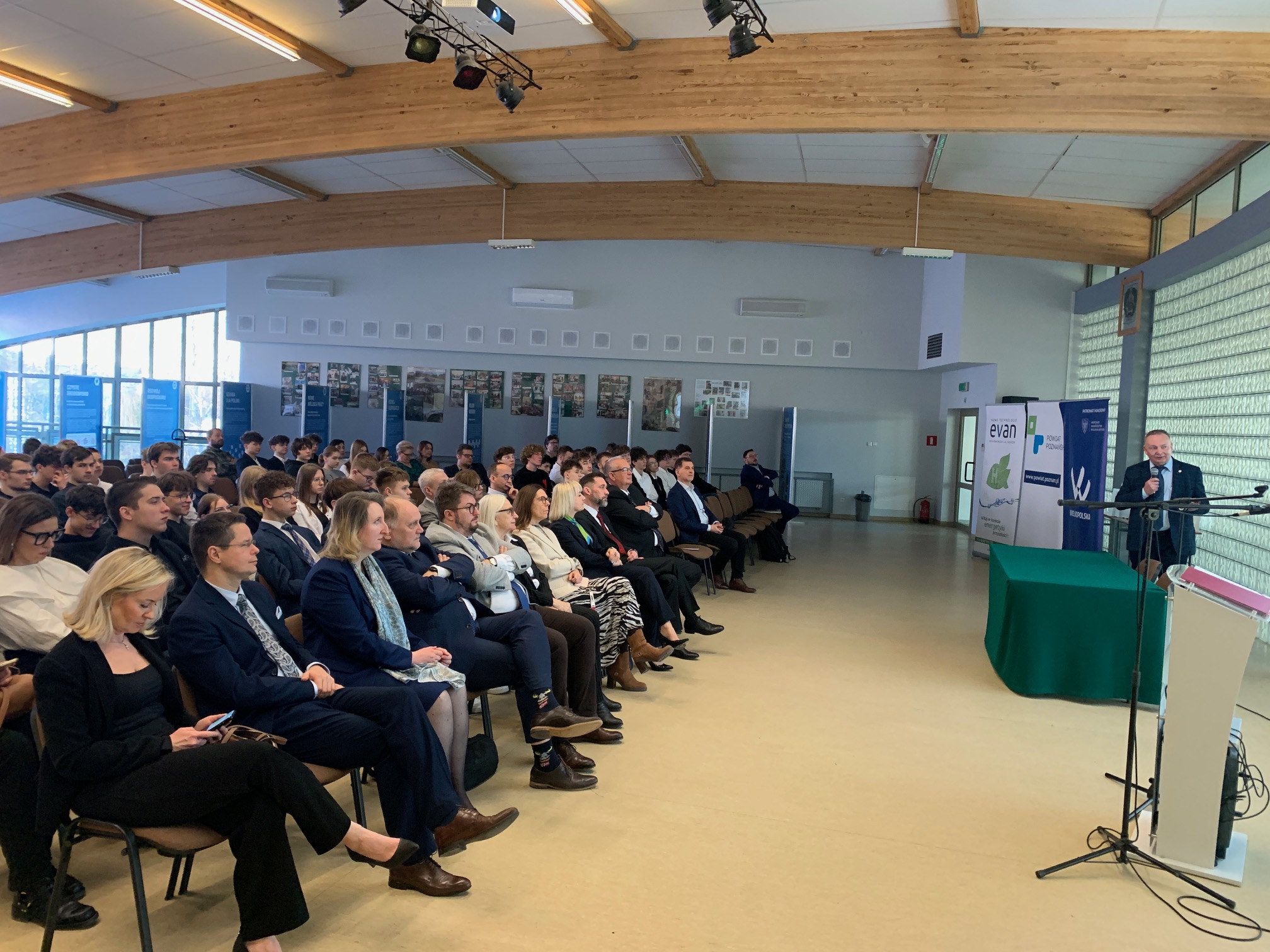 Prezes FSNT NOT Rada w Poznaniu dr inż. Radosław Szczerbowski, wygłosił wykład inauguracyjny pt. „Odnawialne źródła energii, wodór i rola samorządów w transformacji energetycznej”. W uroczystym otwarciu wzięła również udział Prezes Oddziału Poznańskiego SEP prof. dr hab. inż. Aleksandra Rakowska.